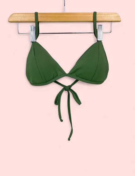 Bralette Basic Top bralette básico triangular con copas removibles de tiras delgadas y ajustables mediante tensores en la espalda.