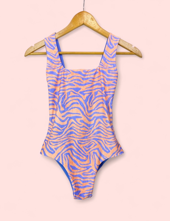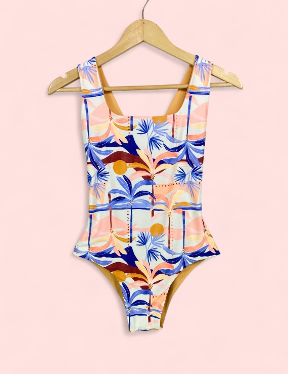 Corina One Piece de cobertura basica, corte en pierna semialto, de escote cuadrado al frente, de tira ancha y con abertura tipo corset en la espalda. Aplica para reversible.