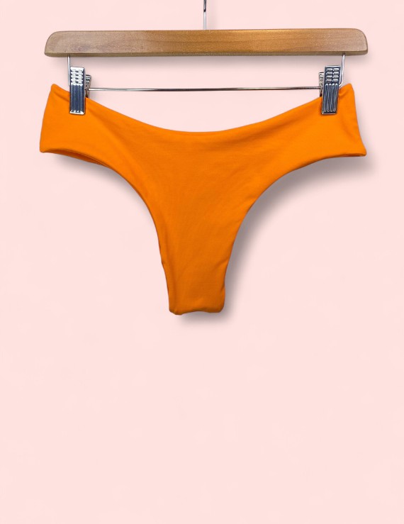 Tanga tipo brasilera talle bajo recto en la cadera, y cobertura semi-hilo.